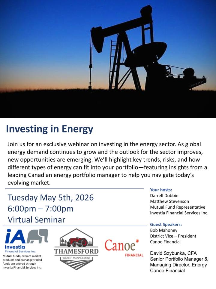 Join us for an exclusive webinar on investing in the energy sector. As global energy demand continues to grow and the outlook for the sector improves, new opportunities are emerging. We’ll highlight key trends, risks, and how different types of energy can fit into your portfolio—featuring insights from a leading Canadian energy portfolio manager to help you navigate today’s evolving market.